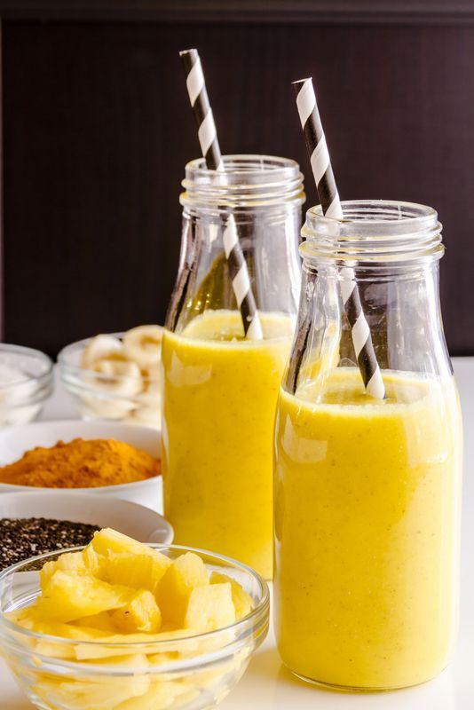 La curcumina presente en la cúrcuma es un polifenol con innumerables bondades para la salud, entre las que destacan sus propiedades antioxidantes y relajantes. Si la combinas con piña tendrás un rico smoothie perfecto para favorecer el sueño, ya que contiene buenas dosis de triptófano que el cerebro convierte en serotonina y melatonina.